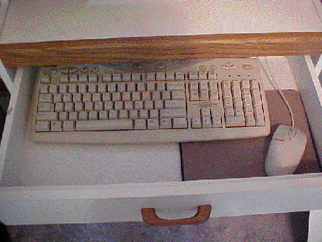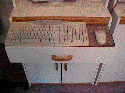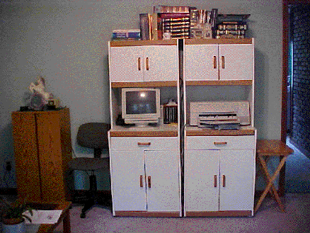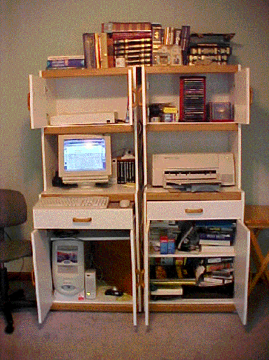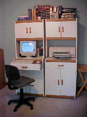 Below the printer is a drawer for scissors, stapeler, more floppy disks,