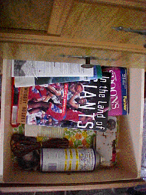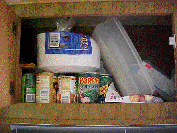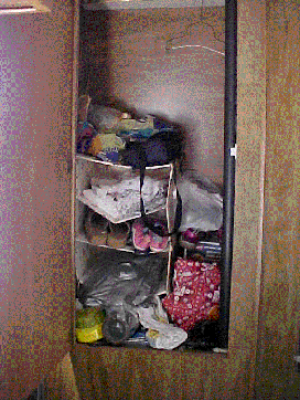 ![]() ![]() ![]() ![]() The cabinet sleeping area where all the bedding was tossed.