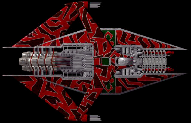 To any race who had never encountered the Narns, or had knowledge of their technology, at first glance this vessel would appear to be from a highly advanced race. A race who was a advanced as perhaps the Centauri, or Minbari. This of course was the intention of the colorful markings and sleek design of the ships wings; to fool other races into thinking the Narn were more technologically advanced than they actually were. If one looks closely however, underneath the bright colors and sleek looking design (created by the folded armor along the port and starboard wings), the Narn Heavy Cruisers is just as bulky, cumbersome, and duty oriented as any Earth ship of this class. Every centimeter of the Narn ship is build for function.