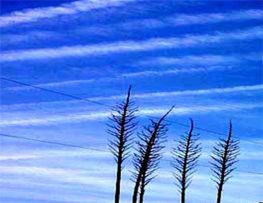 The assertion that the government is spraying noxious chemicals on its own people from high flying military aircraft needs some real substantiation than just reports of seeing contrails in the sky and claiming they are making people sick. While there have been reports of similar activity in the past, merely seeing a jet contrail in the sky does not prove anything. Persistence of contrails is neither an indication that they contain some kind of chemical, nor that it is some kind of sprays. As a matter of fact, sailors have known for years to look specifically at the patterns and persistence of jet contrails for weather forecasting. If a jet is flying through air at altitude with a low humidity, the moist air from the jet engine might produce a slight, short-lived contrail. These short-lived contrails are a sign that the weather will be fair. A thick, long-lasting contrail indicates humid air high in the atmosphere, and can be an early sign of a storm: