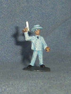 COMMENTS: This guy has a weird, stylized look that doesn't go with the others. Kinda weird. As you can see, I really screwed up on his face -- but the mini sucks, so it doesn't matter. I applied a blue wash for the shadows on the suit, and it turned the whole thing blue. I had to drybrush white so that it looked halfway decent.