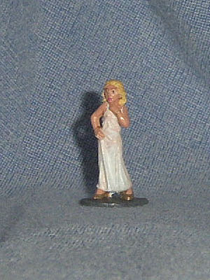 COMMENTS: I like this one. Obviously. I did the see-through effect by first painting the dress with an even flesh/white mix, then drybrushing pure white over the areas that weren't supposed to be in contact with her skin.