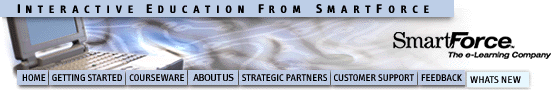 Here at SmartForce we are committed to growing our unparalleled library of interactive courseware to provide you with a comprehensive training resource. As we expand our business, you can be sure that we will continue to develop training in both new technologies and established products.