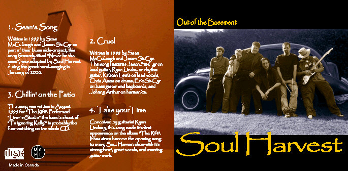 Written in 1999 by Sean McCullough and Jason St-Cyr as part of their blues side-project, this song was adopted by Soul Harvest during the great band-merging in January of 2000. The song features Jason St-Cyr on lead guitar, Ryan Linday on rhythm guitar, Kristen Lewis on lead vocals, Chris Amos on drums, Eric St-Cyr on bass guitar and keyboards, and Johnny Arthur on harmonica. This track is a sample from the newly recorded Soul Harvest demo, and will be on the upcoming SH CD due out by the end of 2000.