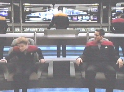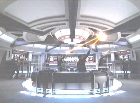 viewscreen towards the Captain's and Commander's chairs, to see the rear LCARS