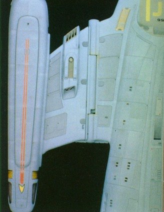 | Each warp nacelle features a photon radiator grille - these are spill ports to prevent excessive photonic build-up in the field release gap between the warp engine's warp-coils. | ![]() |