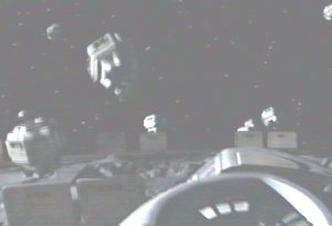 ![]() starboard escape pod hatches open with escape pods ejecting |