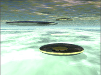 A Remote viewing image of an UFO over a flooded Mediterranean area. |