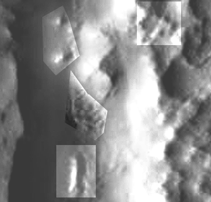 I just highligted the areas of interest. The one in the middle looks like a native american indian thunderbird. The bottom one looks like an elongated pyramid.