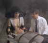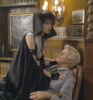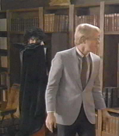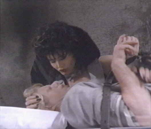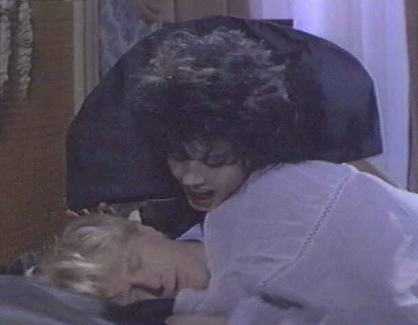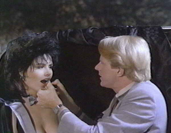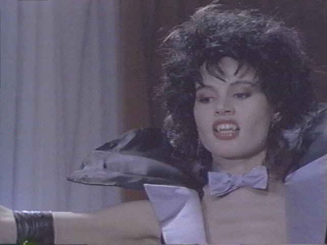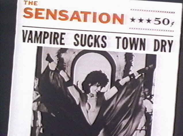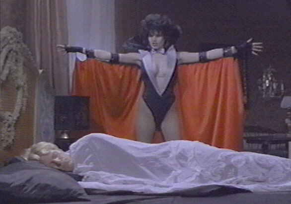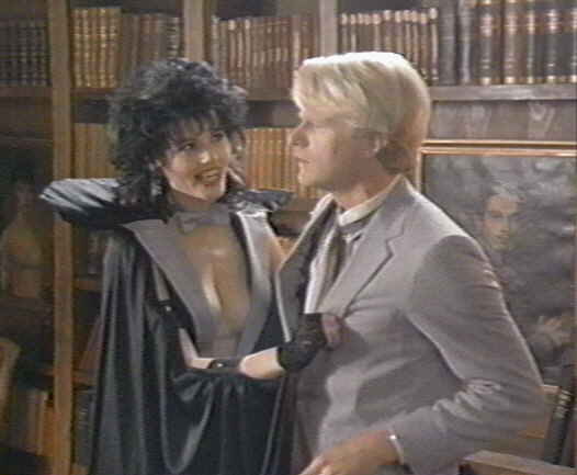 around throughout in a pair of fangs and an alluring little costume. Too bad there's