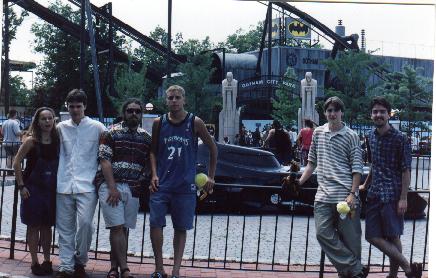 Starting from left we have Melissa Femino (six) (We call her six because when she was working at Dunkin Donuts Eric Cashin came in and asked for a half dozen, he only got 5, so she has respectfully earned the name "six" for the rest of her life. Then Jared Duffy again, Eric Cashin (BDC) (BDC stands for "Big Daddy Cash"), Randy Gilford, We got Sean Duffy (Papa Stud or Duff) (no real reason for either name), and Jim Roberge (BONDO)(we call Jim "BONDO" just because he happened to walk in the room at the wrong moment, "BONDO" just seemed to stick with him.)