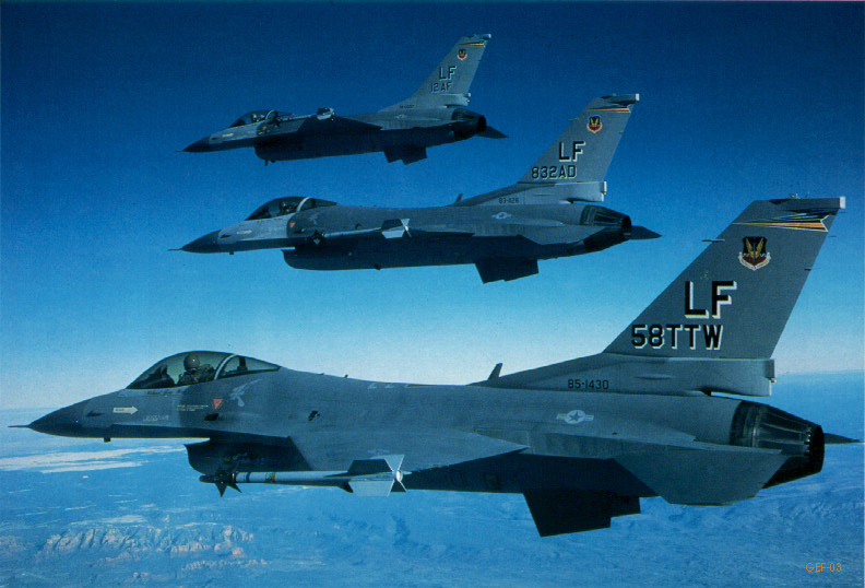 3 F-16c's flying in formation. Great pic. |