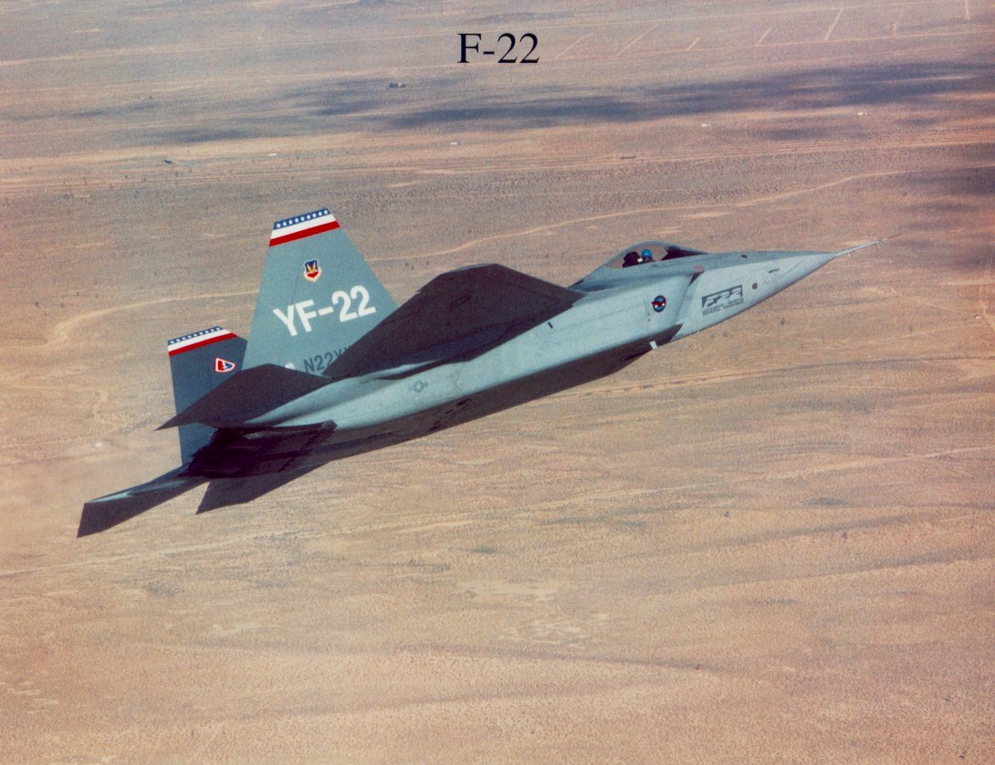 The following plane after the exceptional F-15, the new F-22 is a sleak, stealthy, and deadly plane, with vectored thrust, and advanced control systems. The F-22 is set for replacement of the F-15s in the year 2002-2004. |