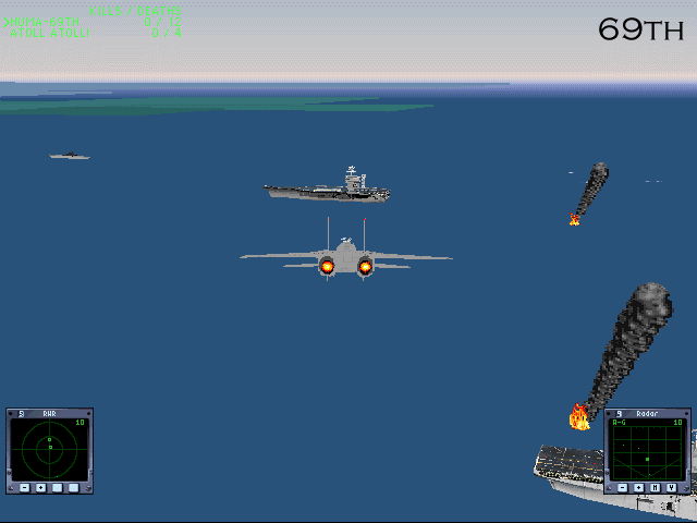 A pretty cool picture of my F14 flying by some aircraft carriers, while me and MrXpress bomb things. |