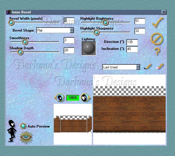 11. Click on the first merges images and apply eye candy inner bevel. I used these settings but you can play around a bit to get the image you would like.