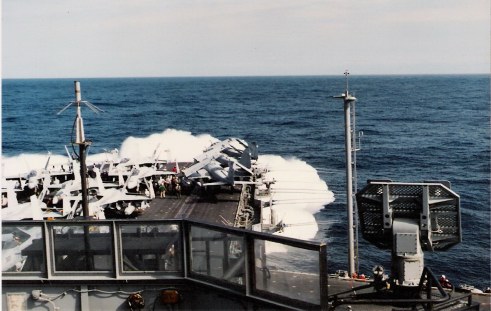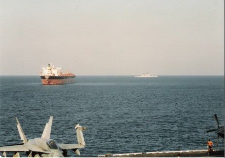 ![]() Tanker escort duty in the Persian Gulf. Note that the F18 is armed. This was taken in 1987 when Sadaam was still our "ally" against Iran.