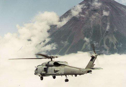 ![]() An H60 Seahawk from my squadron with Mt. Fuji in the background. As I was taking this shot, I was leaning out of the cabin door of an identical helo while strapped into a gunner's belt.