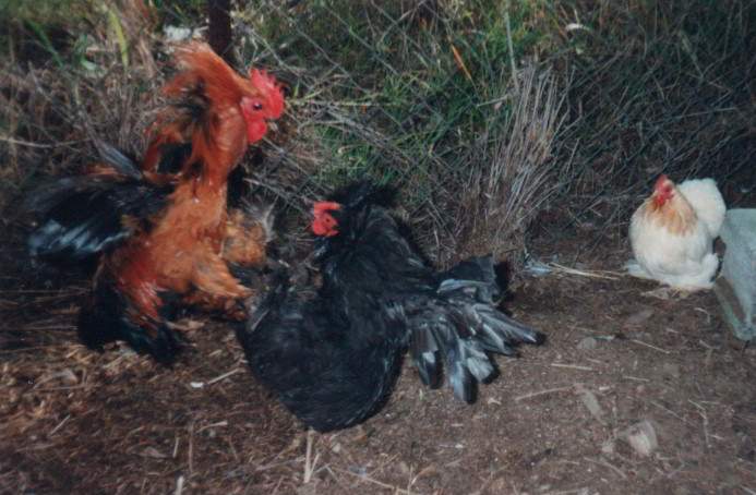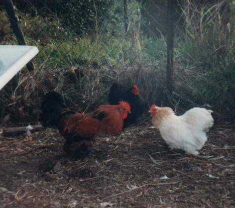This is a really really old photo of the chooks that we had when I was 6, anyways dad ended up giving them away to the neighbours