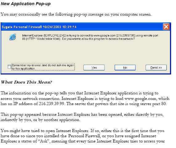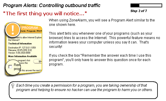 Like Zone Alarm this window will pop up, just click the white box and click yes to most of these pop ups.