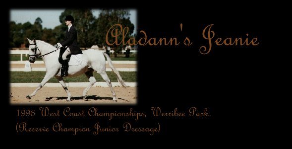 Jeanie is a grand old dame. She is the horse that I have done most of my competing on, most of my learning, most of my lessons, and she has been the most wonderful friend anyone could ever wish to have. She has a very aristocratic nature, and hence quite an opinion of herself. She's very independent and can look after herself very well. She's quite partial to being pampered and spoilt though, and thinks herself very photogenic.