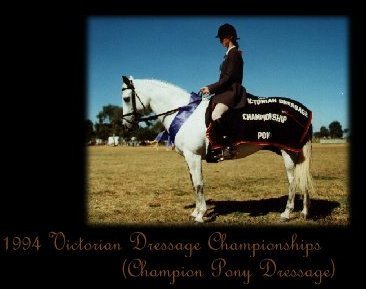 | ~ Winning "Champion Pony" in the Nissan Victorian Dressage Championships, 1994. |