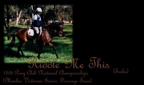 | ~ Riding for Victoria in the Pony Club National Championships, Wagga Wagga, 1995. |