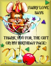 As I've gone signing guest books, some of the wonderful people have actually sent me 'THANK YOU'S'! Which has really surprised me, 'cause I love signing the books, and telling people how great there pages are! I mean, its sooooo much FUN! ![]() Your Welcome Fairy Angeleyes!