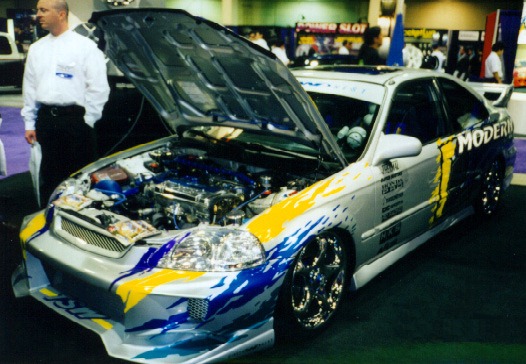 (SKYLIN04.JPG) ChromeBlue Nissan Skyline with fender flare