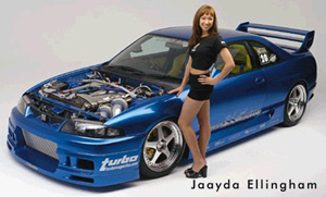 (SKYLINE1.JPG) Sparkling blue Nissan Skyline of Greddy with Jaayda Ellingham