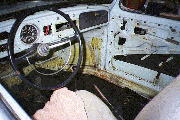 The area behind the rear seat also has new metal welded in. The dash pad is ripped out, and I make the decision not to put one back.... |