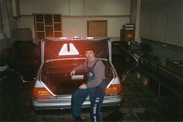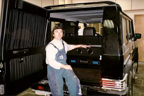 Lexus No1А начинки багажника из-за ореола аварийного знака и не видноМониторы почти не видны но  хоть рядом со 140-м постоятьУм McIntosh 4000 в одном флаконе с двумя сабами и автор флакона рядомНаш первый геленвагенЧего они так сложно сиденья делают? Мне-ж в него монитор надо вставить.Скелет подголовника и монитор JVC перед операцией скрещиванияОперация скрещивания прошла успешно