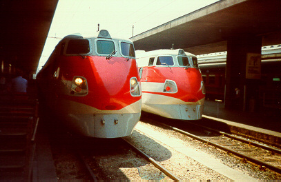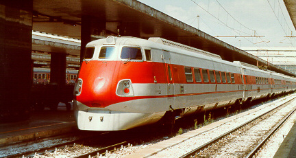 Un pò di storia...L'ETR 450 nasce dalla necessità delle Ferrovie dello Stato di aumentare la velocità commerciale dei treni sull'asse Roma-Milano,dato che la Direttissima (all'epoca del progetto) era ancora lontana dal completamento e comunque il treno che ne avrebbe potuto sfruttare le caratteristiche (l'ETR 500) era ancora in fase di studio.L'ETR 450 con le sue caratteristiche avrebbe permesso di ovviare a questi problemi in tempi brevi . Con l'impiego dell'assetto variabile si sarebbero aumentate le velocità massime di 20/30 KM/h sia sulle nuove che sulle vecchie linee. Inoltre il pendolino per le sue caratteristiche è un treno di grande flessibilità : essendo un elettrotreno a potenza frazionata (cioè divisa ugualmente sulle unità di trazione) è possibile aumentare le unità di trazione senza modificare il rapporto potenza/massa,da cui dipendono le prestazioni del treno (velocità massima compresa). Le prime prove vennero fatte nel 1967 con il prototipo FIAT Y0160 e furono un successo tanto che nel 1975 venne consegnato l'ETR 401 treno di preserie dei futuri ETR 450,che sarebbero divenuti l'inizio della flotta AV delle FS. Purtroppo a causa delle scelte politiche dell'epoca rimase a lungo esemplare unico. | un sito sulla rotaia... |