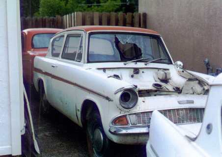 Here is the new Anglia 105E project car... Progress is coming along slow but sure. If anyone has spare taillight or front turn siginal lenses,I am in need, so please contact me at the e-mail address below. I recieved a new windshield from a place in Iowa that said they had 8 in stock. It looks great. It had small laminate seperation around the edges, but that will be covered by the rubber holding the window in. It cost me about $200.00 for the glass delivered to my door. E-mail me for more info at [email protected]