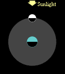 The revolution of the Moon around the Earth makes the Moon appear as if it is changing shape in the sky. This is caused by the different angles from which we see the bright part of the Moon's surface. These are called "phases" of the Moon. Of course, the Moon doesn't generate any light itself; it just reflects the light of the Sun. The Moon passes through four major shapes during a cycle that repeats itself every 29.5 days. The phases always follow one another in the same order. Below are pictures of the four major shapes and a description of each.