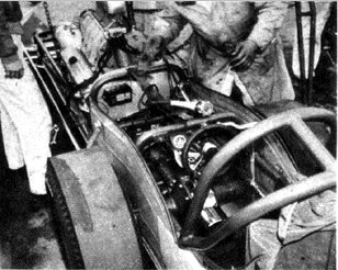 Dragmaster chassis was modified considerably by Mickey. Super-safe roll bar is his trade-mark.