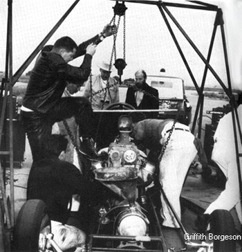 Here Mickey and his crew are changing an engine in the Assault. He would chang engines depending on the record class he was going to run. They could change an engine in under 90 minutes. |