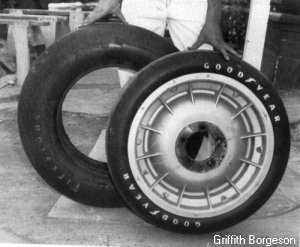 This is how the radical Goodyear tire for the Land Speed Record attempt compared with Firestone's existing high speed tire in 1959.