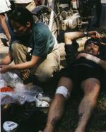 front of his bike went under the wheels of the truck, and the huge lorry then spat the bike out like a mouthful of cold coffee. I thought I was clear, but the mangled bike landed directly across my path and I T-boned it on the rear wheel, my bike was thrown up into the air catapulting me up and forwards. I cleared
