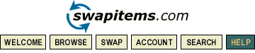 If you already have an account and you'd like to insert an item for trade, please click the 'Swap' button above, click through the link to insert your password, enter your password, choose which category you would like to submit your item to, and fill out the simple form. Your item will be online immediately. Click reload/refresh in your browser if you do not see your listing in the category.