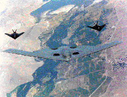 The B-2 Spirit is a multi-role bomber capable of delivering both conventional and nuclear munitions. A dramatic leap forward in technology, the bomber represents a major milestone in the US bomber modernization program. The B-2 brings massive firepower to bear, in a short time, anywhere on the globe through previously impenetrable defenses. Along with the B-52 and B-1B, the B-2 provides the penetrating flexibility and effectiveness inherent in manned bombers. Its low-observable, or "stealth," characteristics give it the unique ability to penetrate an enemy's most sophisticated defenses and threaten its most-valued, and heavily defended, targets. Its capability to penetrate air defenses and threaten effective retaliation provide a strong, effective deterrent and combat force well into the 21st century. The revolutionary blending of low-observable technologies with high aerodynamic efficiency and large payload gives the B-2 important advantages over existing bombers. Its low-observability provides it greater freedom of action at high altitudes, thus increasing its range and a better field of view for the aircraft's sensors. Its unrefueled range is approximately 6,000 nautical miles (9,600 kilometers). The B-2's low observability is derived from a combination of reduced infrared, acoustic, electromagnetic, visual and radar signatures. These signatures make it difficult for the sophisticated defensive systems to detect, track and engage the B-2. Many aspects of the low-observability process remain classified; however, the B-2's composite materials, special coatings and flying-wing design all contribute to its "stealthiness." The B-2 has a crew of two pilots, an aircraft commander in the left seat and mission commander in the right, compared to the B-1B's crew of four and the B-52's crew of five. The first B-2 was publicly displayed on Nov. 22, 1988, when it was rolled out of its hangar at Air Force Plant 42, Palm dale, Calif. Its first flight was July 17, 1989. The B-2 Combined Test Force, Air Force Flight Test Center, Edward's AFB, Calif., is responsible for flight testing the Engineering, Manufacturing, and Development aircraft as they are produced. Five of the six developmental aircraft delivered to Edward's are still involved in continuing flight testing. The first test aircraft is currently kept in flyable storage. Whitman AFB, Mo., is the B-2's only operational base. The first aircraft, Spirit of Missouri, was delivered Dec. 17, 1993. Primary maintenance responsibility for the B-2 is divided between Oklahoma City Air Logistics Center at Tinker AFB, Okla. for avionics software (contractor); Ogden Air Logistics Center, Hill AFB, Utah for landing gear and trainers (contractor); and the Northrop-Grumman facility at Air Force Plant 42 at Palm dale for periodic depot maintenance. The prime contractor, responsible for overall system design and integration, is Northrop Grumman's B-2 Division. Boeing Military Airplanes Co., Vought Aircraft Co., Hughes Radar Systems Group and General Electric Aircraft Engine Group are key members of the aircraft contractor team. Another major contractor, responsible for aircrew training devices (weapon system trainer and mission trainer) is Hughes Training Inc. (HTI) - Link Division, formerly known as C.A.E. - Link Flight Simulation Corp. Northrop-Grumman and its major subcontractor HTI, excluding Link Division, is responsible for developing and integrating all aircrew and maintenance training programs.