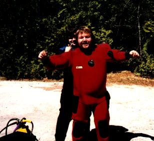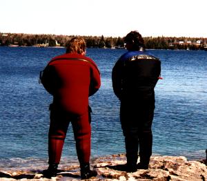Greg and I getting suited up for a dive in Tobermory Ont.