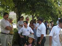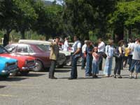 eucaliptos, tipo pic-nic. A carne de porco estava à