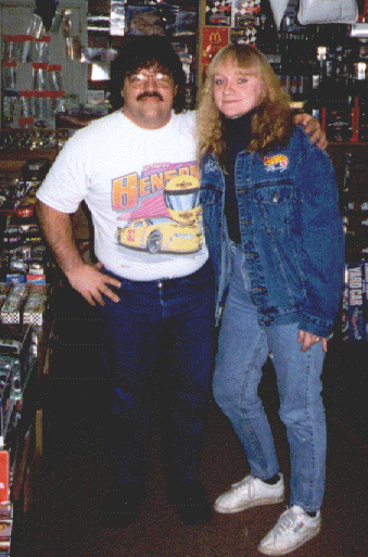 This is my friend spacy....:-) and his friend Crystal#44....you might know them from NOL? Check out spacy's shirt....he's a Dale Earnhardt fan but I think he is a closet Roush fan...;-)