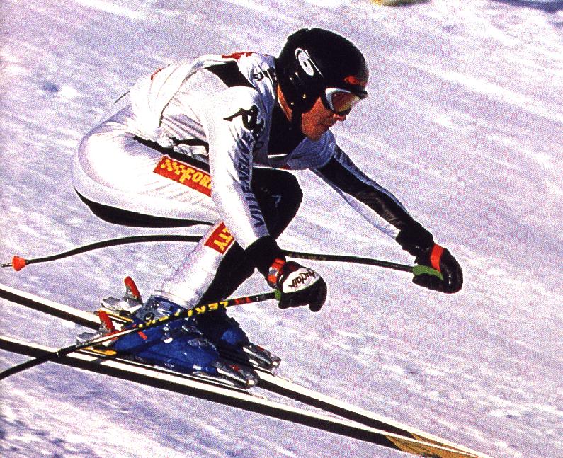 Jacques Villeneuve in action at the "24 Heures de Villars" skiing race (January 1999)