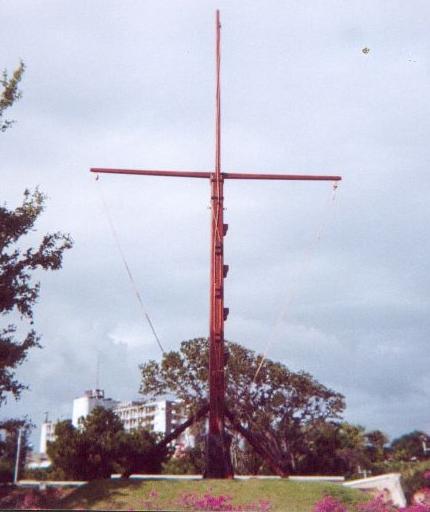 The Vigilant's Cross is a 100 feet reinforced concrete cross at the Vigia Hill, north to Ponce Downtown. Is visible near from everywhere when visiting Ponce. Was built in 1984 by the Ponce City Government as a monument to all the Vigilants (watchmen), which served protecting the city against pirates and enemies attacks in the XIX century. The original lookout post consisted in a wooden mast and a little house. The vigilants, after recognized certain ships, looking the ships through an old telescope, displayed flags on the mast to advice the military authorities about the origin and type of the incoming ships. We can compare the old cross to modern day defense radar. The cross was in use by the Ponce Spanish government since 1801 to 1898, when due to the Spanish-American War, Spain was compel to cede Puerto Rico to the United States.