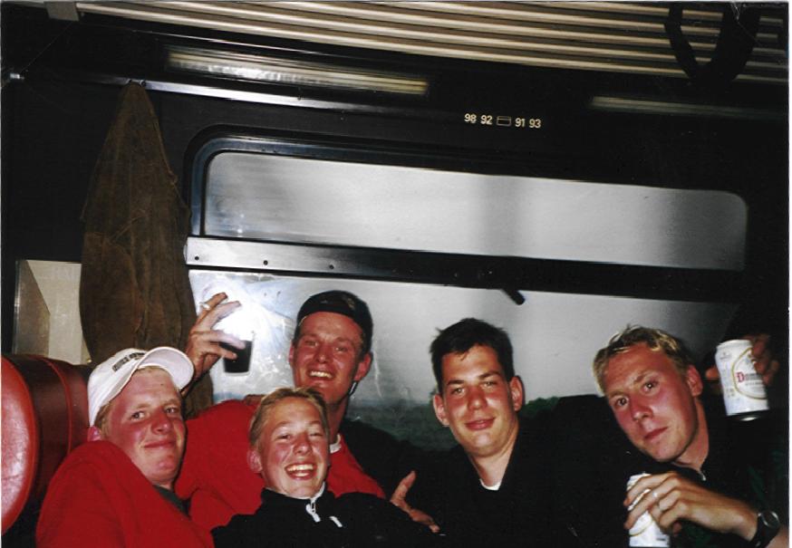 ![]() Vlnr: Jaapio, Boka, PPJP, Joepsma en Witte. Terug weg trein van Pinksterraces