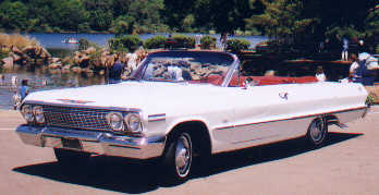 I found my beautiful car in my hometown. I saw it on a Dealer's Used Car Lot. Its color was white, with a white top, and a red interior. I took it for a test drive, and knew this car had to be mine. The year was 1965. The car was a 1963 Chevrolet Impala Convertible Sport Coupe. What a gorgeous car, I thought, as we signed the papers, and drove it home. This car was mine!