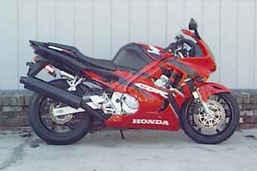 Model 1997 CBR600F3 Engine Type 599cc liquid-cooled inline four-cylinder Bore and Stroke 65mm x 45.2mm Compression Ratio 12.0:1 Peak Horsepower 90 bhp at 11,500 rpm Peak Torque 43.7 ft-lbs at 10,000 rpm Valve Train DOHC; four valves per cylinder Carburetion Four 36mm slanted flat-slide CV Ignition Computer-controlled digital transistorized with three-dimensional mapping Transmission Close-ratio six-speed Final Drive O-ring-sealed chain Suspension Front: 41mm HMAS cartridge fork with spring preload and rebound damping adjustability; 5.1 inches travel Rear: Pro-LinkŪ HMAS single shock with seven-way spring preload, and rebound and compression damping adjustability; 4.7 inches travel Brakes Front: Dual disc with twin-piston calipers Rear: Single disc Tires Front: 120/60ZR-17 radial Rear: 160/60ZR-17 radial Wheelbase 55.3 inches Seat Height 31.9 inches Dry Weight 405.6 pounds Fuel Capacity 4.5 gallons, including 0.8-gallon reserve Quarter Mile 11.00 at 124.61 mph |