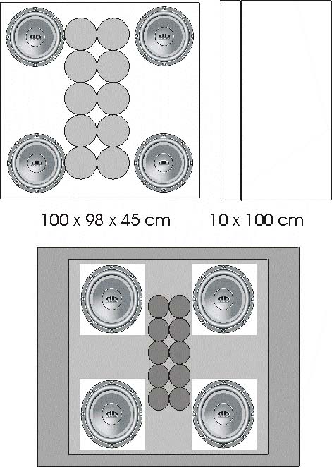 Competition CD Changer: Pioneer P-1250 Preamp : Orion Pmq 500 Power : Soundstream reference 1000s Sub Woofer : Crosfire DB 12 DVC x 4 Spl Reached :152.9 Db Box type : Ported with ten 3 inch PnR
