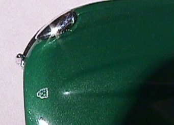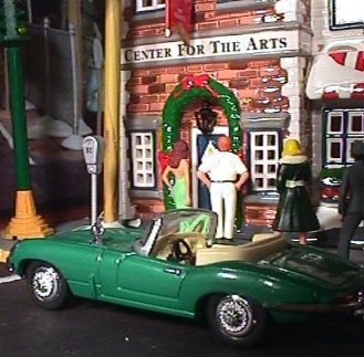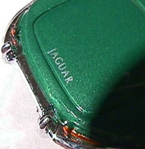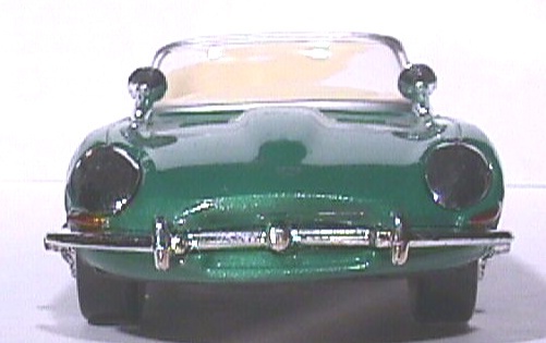 like this one in the later sixties. The interior is fantastic. The colour is perfect for the soft glove leather that would be the interior of a sports car like this one. And the colour is a perfect contrast to the emerald green body. Unfortunately they did a wonderful job molding the interior including putting instruments on the dashboard but they didn't finish the details. Someday when I am feeling extra confident I may send this model to the custom shop for just a tiny bit of touch up on the interior. They also included contrasting carpet on the floor. I have rarely seen a better interior than this one in a model. The wheels sport wire wheel covers and they did a nice job with them. It also has dual fender-mounted side view mirrors. And they took the time to chrome them. They aren't just gray plastic like the side view mirrors on most diecast models. In addition they did a nice job putting the "Jaguar" on the deck lid and they went above and beyond the call of duty by putting the Jaguar logo on the hood. Nothing on this model opens, but that's ok I can undestand why it doesn't.